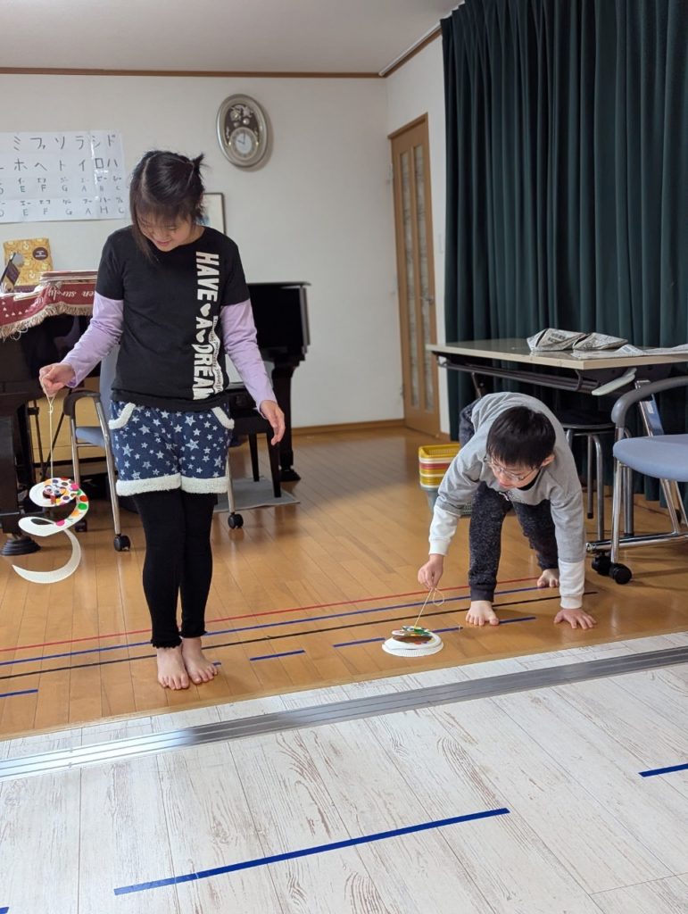 きながクラスでは子供たちの集中力を少しでもピアノに向けるために途中で楽しい遊びや製作があります。