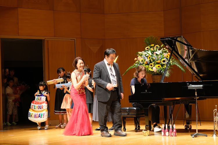 私も光栄ながらピアノを弾かせて頂き、生徒達も花束贈呈などで大活躍!!