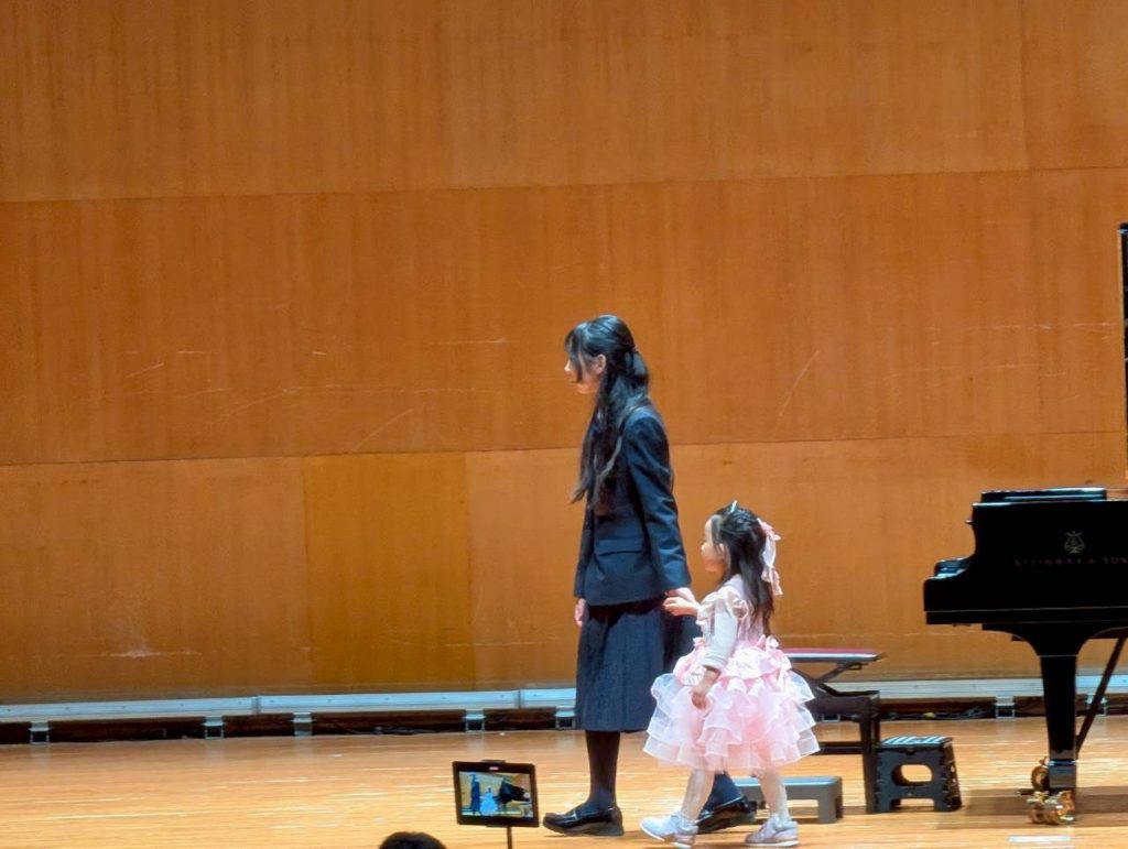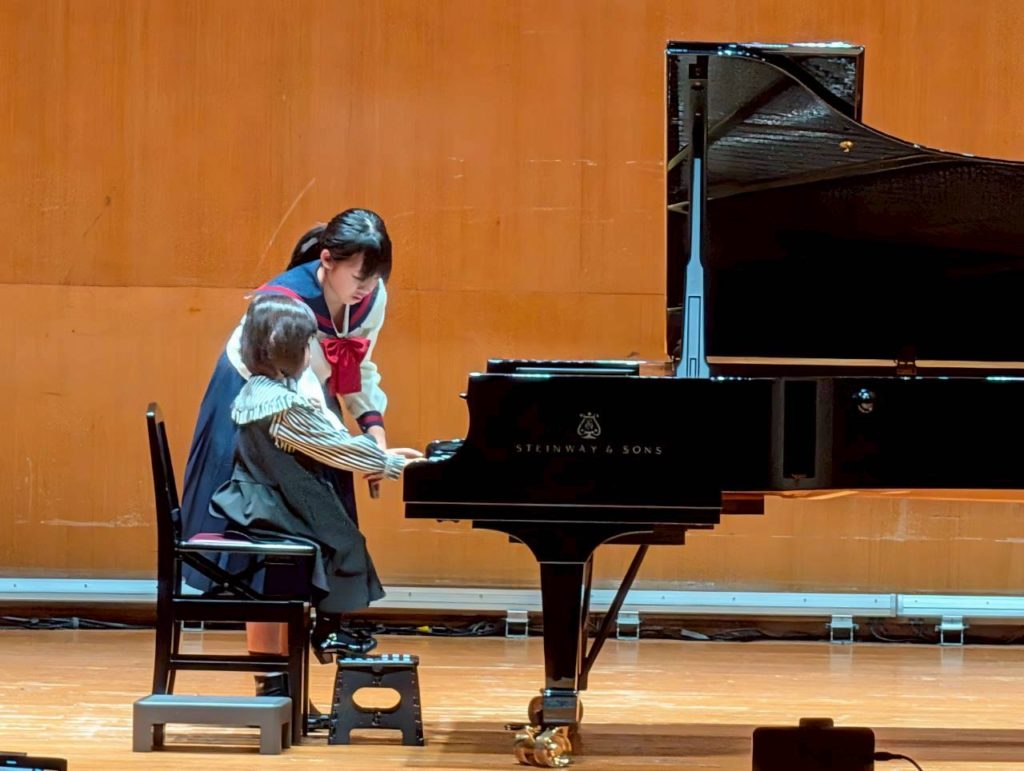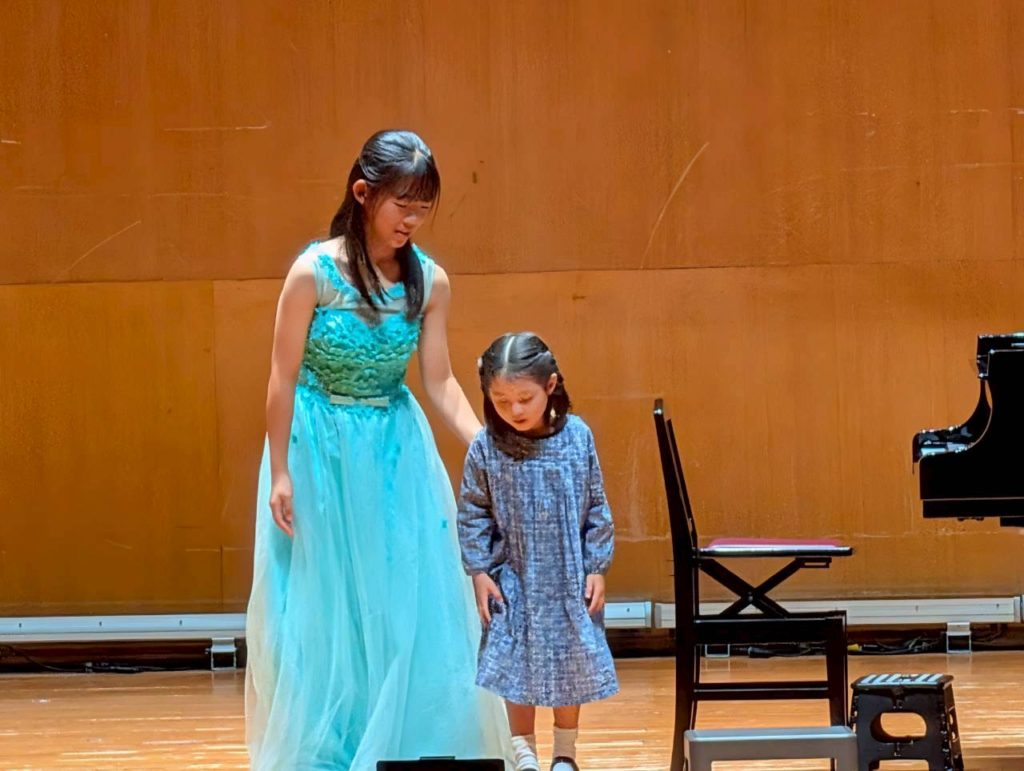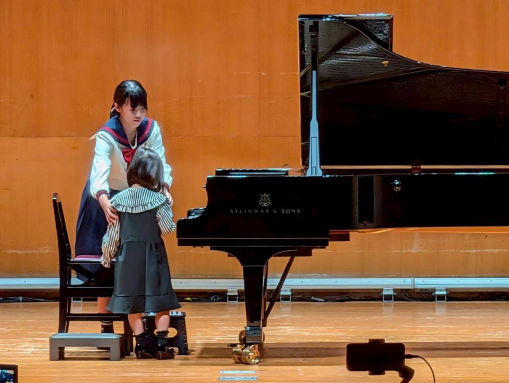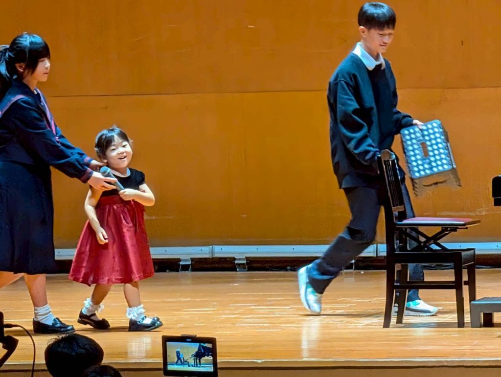 幼稚園音楽クラスの舞台でのお手伝いは中学生の女子たち!!
